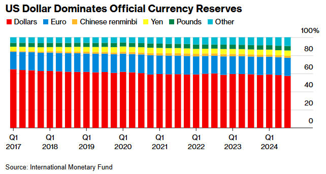 过去,关于欧元有望取代美元的预言曾多次被证明是误判。最新统计显示,欧元在全球外汇储备中的份额占比目前还仅约为20%,而美元则占据着近60%的主导地位,这种格局多年来基本未变。