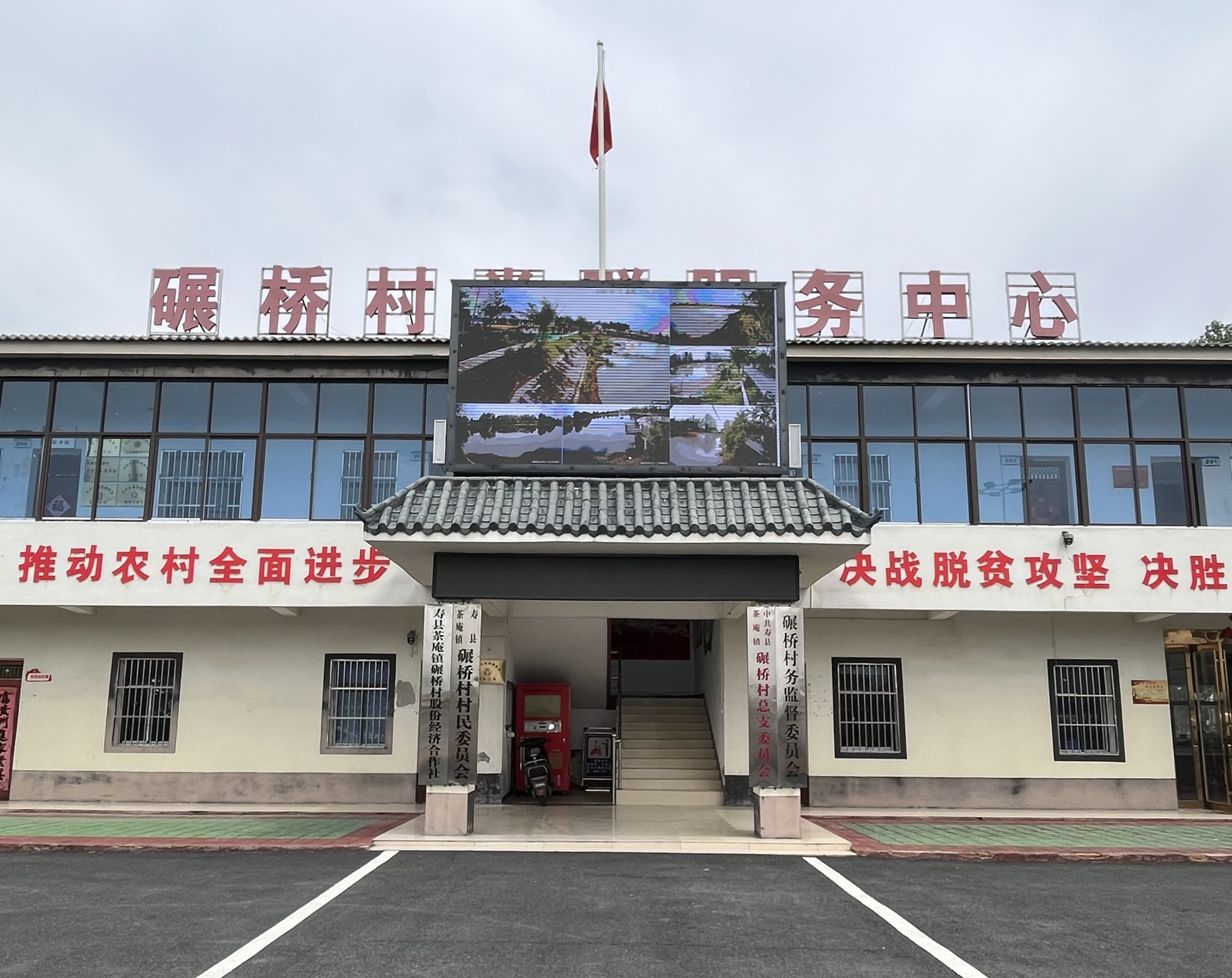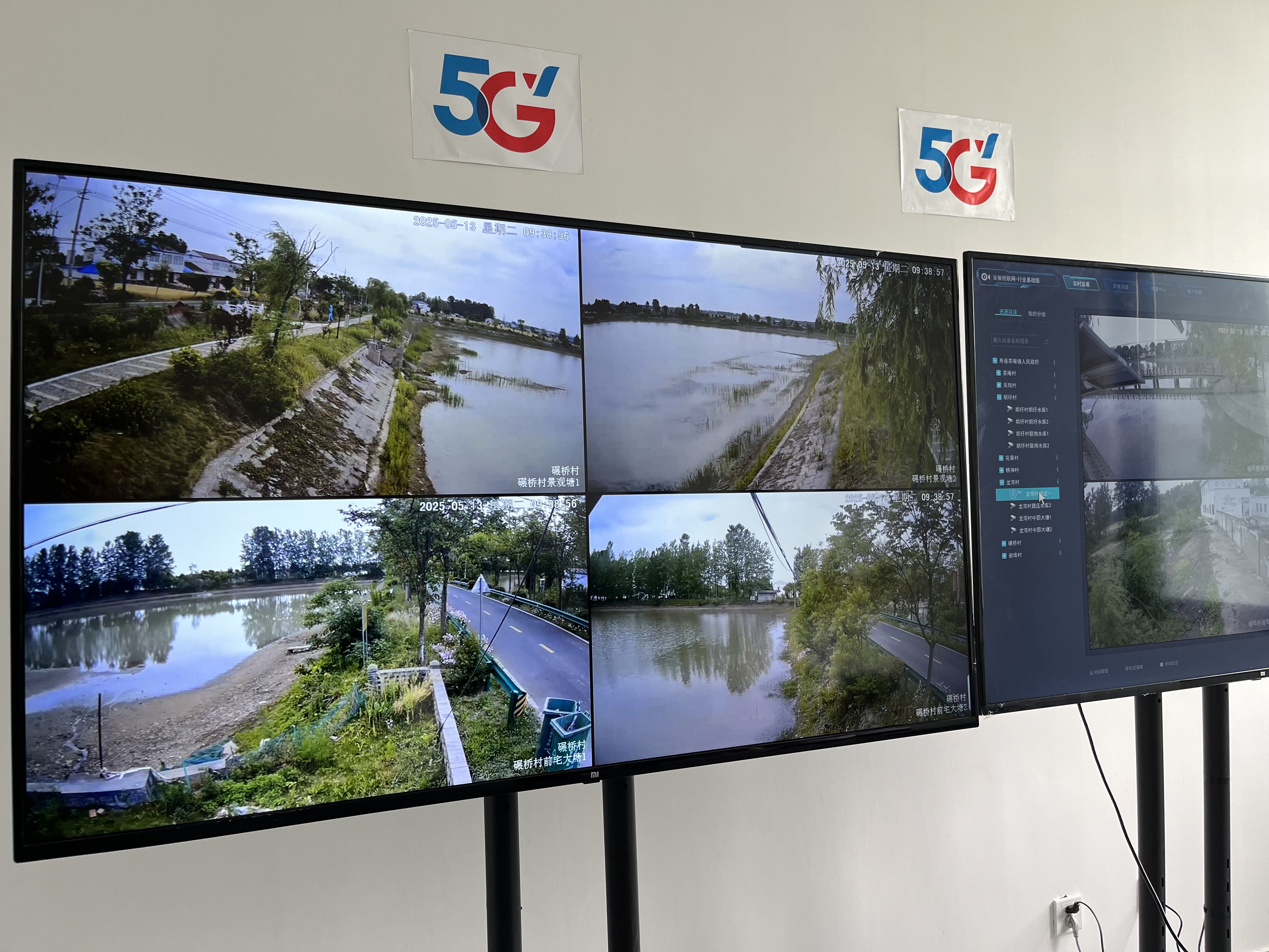 碾桥村的电子大屏上正在播放不同水域的实时监控画面