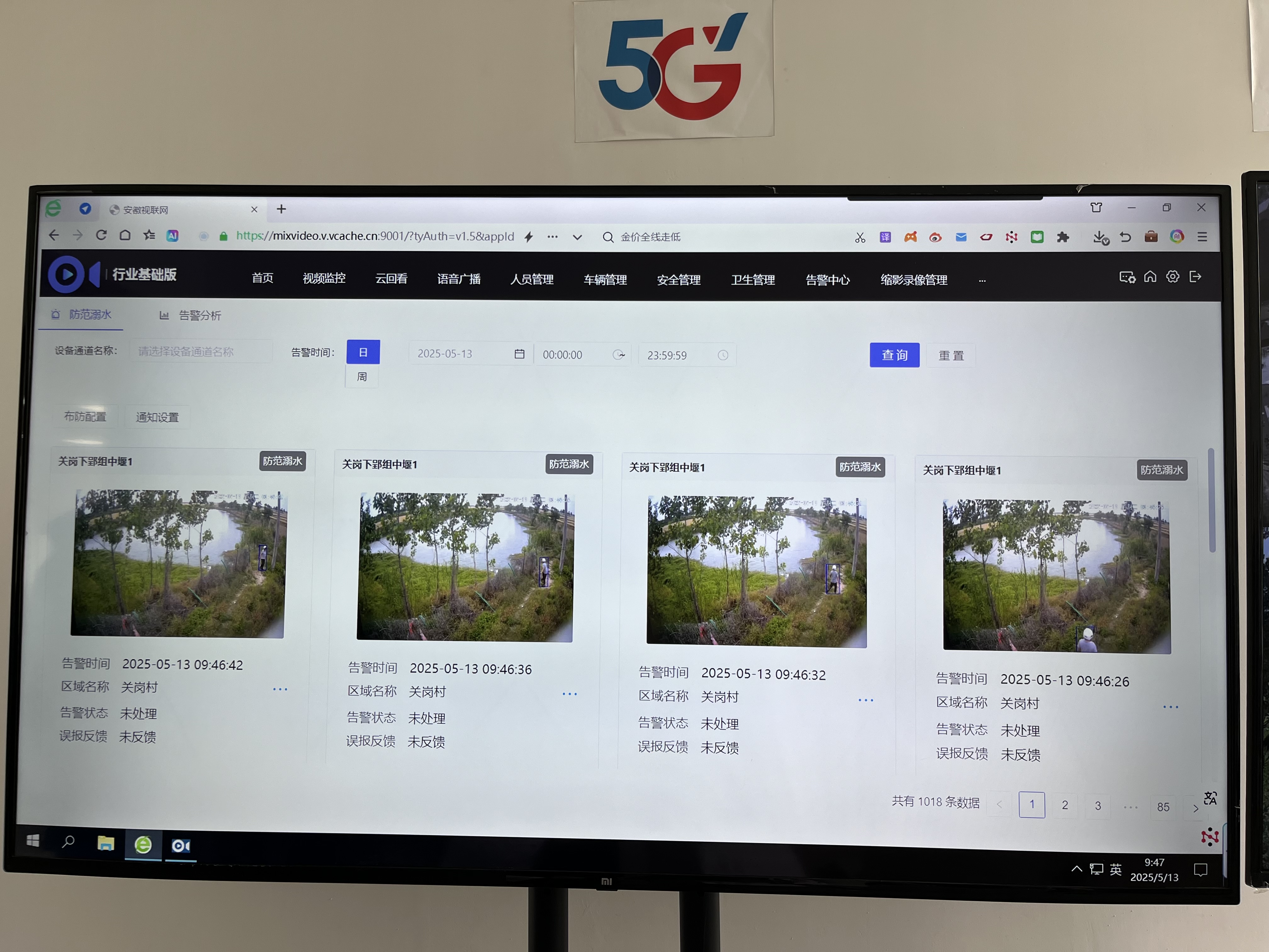 二是远程应急指挥。在该镇监控中心大屏上,可实时查看多路不同水域画面,当系统监测到危险行为后,会自动通过报警消息、大屏弹窗、APP报警等多种报警方式提醒管理人员注意,管理人员发现险情点击“一键喊话”可远程喊话现场,对危险行为进行喝止,并通过短信联动附近救援力量。
