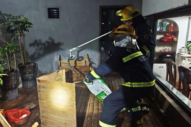 6 月 19 日晚,德化县浔中镇一便利店惊现大蛇,消防员在报警人的带领下发现一条 2 米长的锦蛇,为防止大蛇受惊逃窜,消防员果断使用捕蛇夹,以 "快、准、狠" 的手法夹住蛇头,放入预先准备好的装蛇袋内,随后将其带往野外放生。