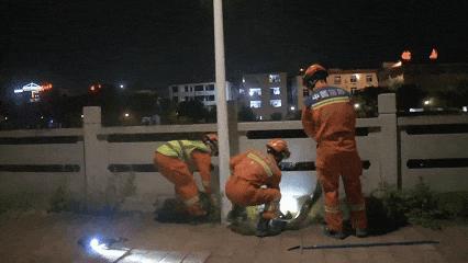 三名消防员在做好个人防护后,利用捕蛇器控制住蟒蛇,将其带到空旷地带放入袋子内,随后移交给德化县野生动物保护协会。